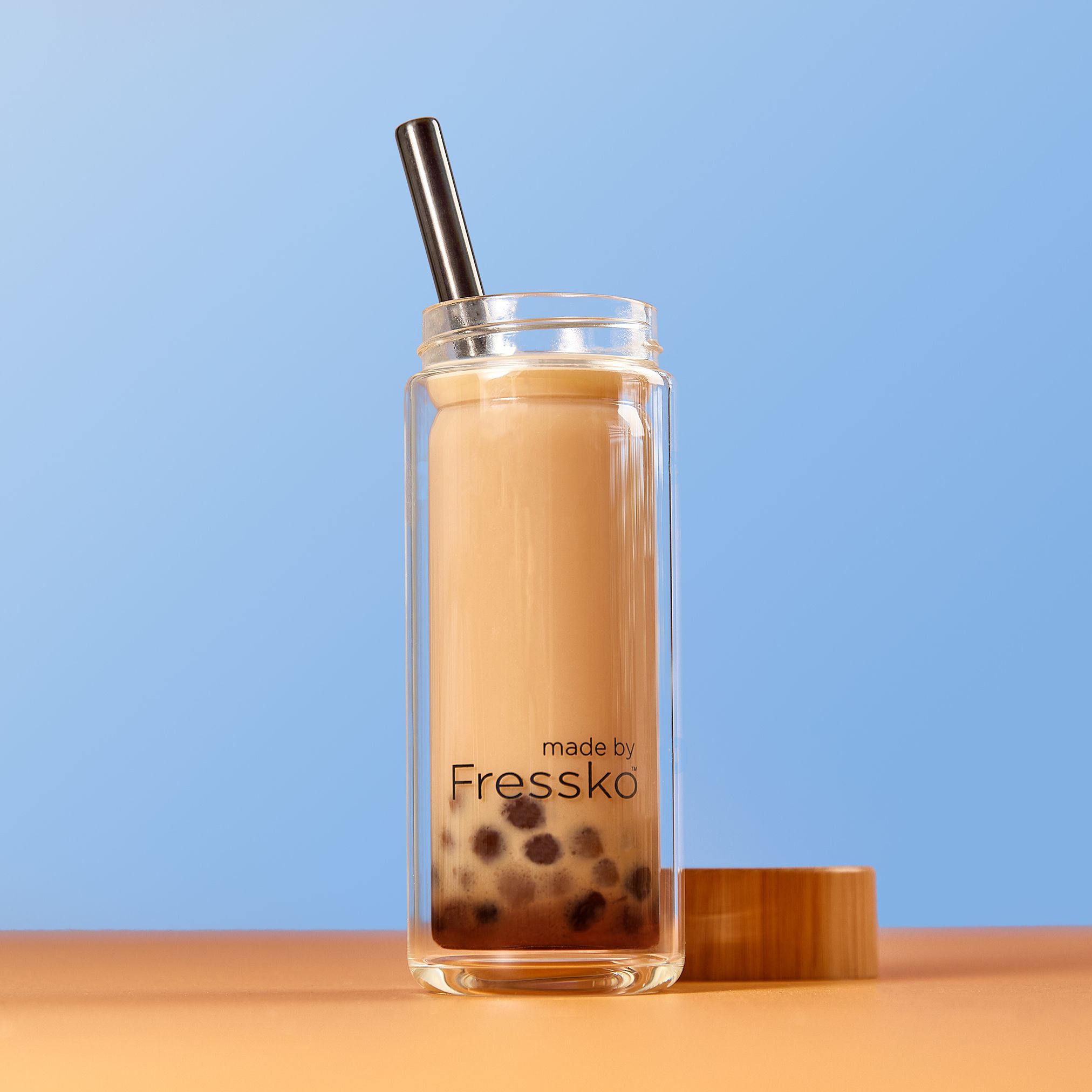 7. Top with milk and enjoy with a bubble tea straw.